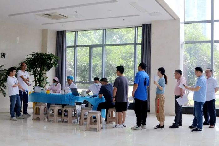 6月的暑热天气也抵挡不住大家的献血热情,他们自觉遵守现场秩序,在工作人员的引导下严格按照要求进行信息登记、健康状况征询、血压测量,血液检测等工作,体检合格的志愿者前往献血车进行采血。