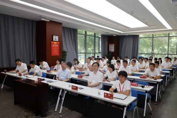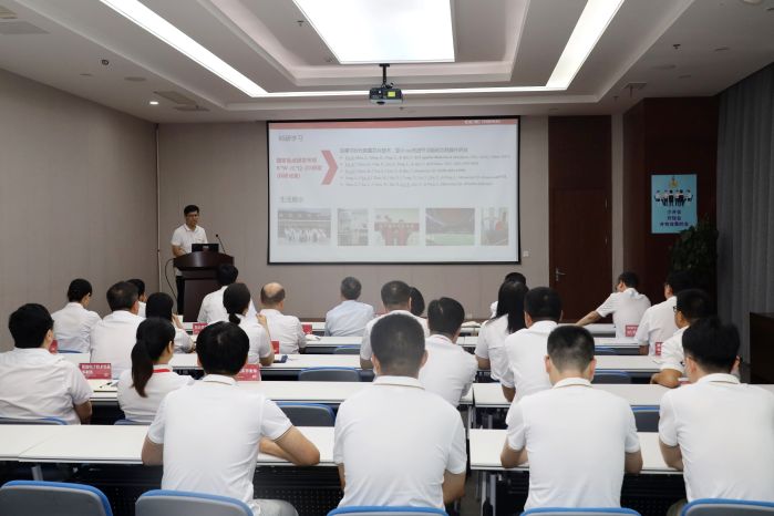 人力资源部负责人主持会议,介绍集中教育培训有关安排。新员工一一进行自我介绍,分享科研成果、职业规划、兴趣爱好等。